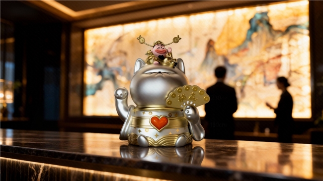 品牌将抽象文化转化为具象产品细节,如将南北朝石雕的 “招手” 姿态重构为迷糊猫的 “马上发财招财手”,让年轻人在把玩中潜移默化感知文化精髓。传播上,摒弃说教式科普,以轻松有趣的故事化表达呈现产品背后的历史渊源,形成 “产品消费→文化认同→社交分享” 的传播闭环。同时,针对 “玄学潮”“新文玩收藏” 趋势,将产品打造成兼具招财寓意与收藏价值的艺术品,通过与先锋艺术家合作,让中华招财猫文化与国际潮流接轨。