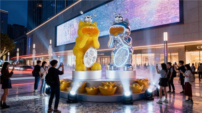 此外,品牌构建了多元化业务矩阵,涵盖装置艺术、活动美陈、企业定制等,商场开业时的大型招财猫装置成为打卡焦点,企业定制礼品传递文化与祝福,形成 “产品销售 + 服务变现 + IP 增值” 的复合盈利模式。
